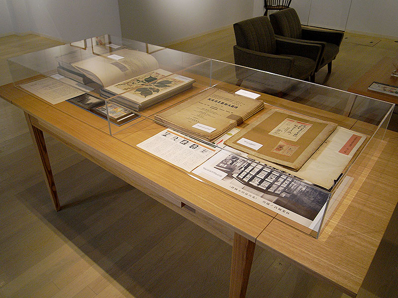 会場スペース(71㎡)の関係上、石版画全86枚すべてを観ていただくことはできませんでしたが、36枚を額装して展示、ほかに大判の石版画「北海道重要樹木図」や製本されたものを数種、当時実際に郵送に使用された封筒、年表などの資料もならべ、なるべく平面的な印象にならないよう会場を構成しました。
