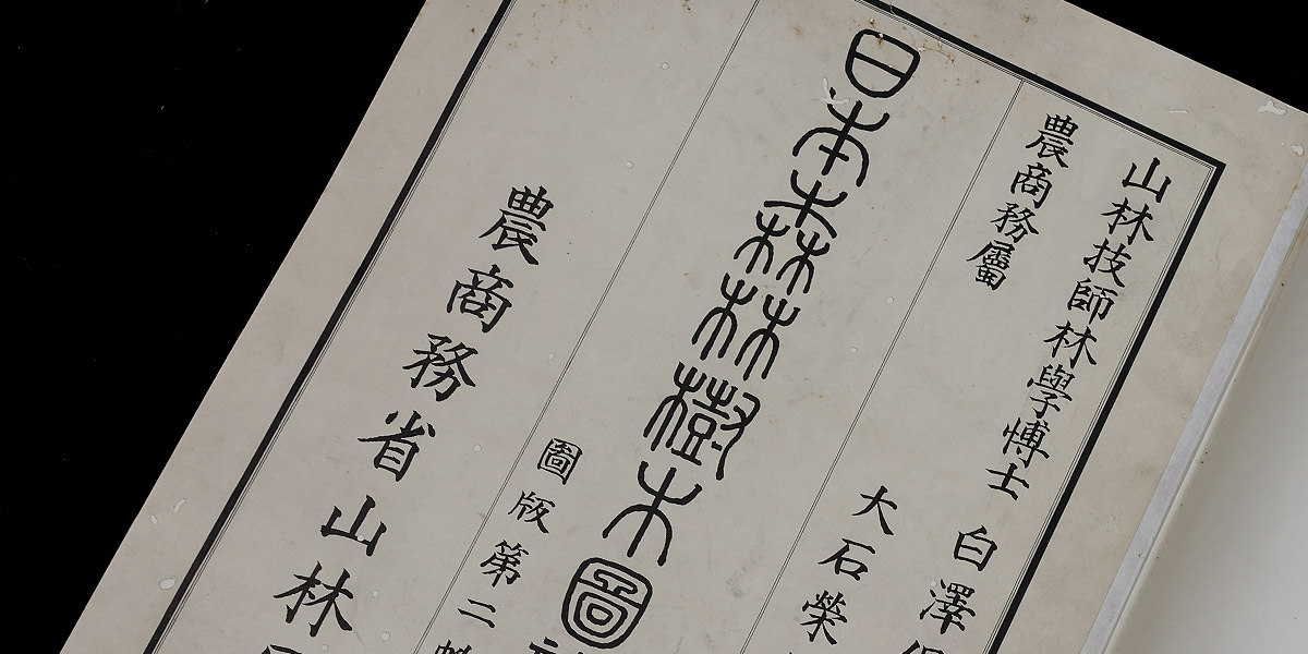『日本森林樹木図譜』は『北海道主要樹木図譜』発行より遡ること20年の明治33年(1900年)に農商務省山林局が発行、林学博士白沢保美が編んだ樹木図鑑で、『北海道主要樹木図譜』制作にあたってはこれを大いに参考にしたと推測されます。
